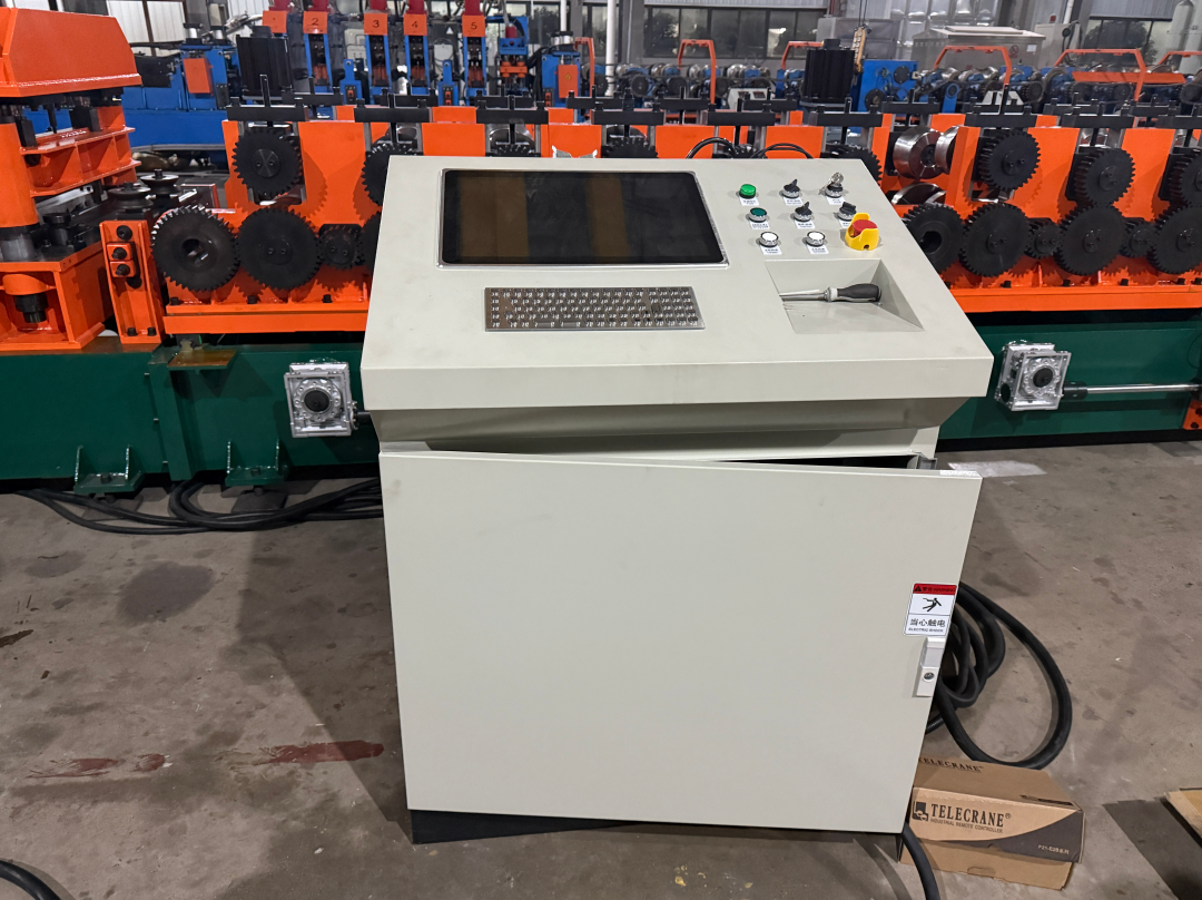 The system employs a PLC (Programmable Logic Controller) computer control system, combined with automatic flying saw and punching technology, achieving full-process automation from material feeding, leveling, punching, forming to fixed-length cutting, significantly reducing manual intervention and enhancing production efficiency and precision.