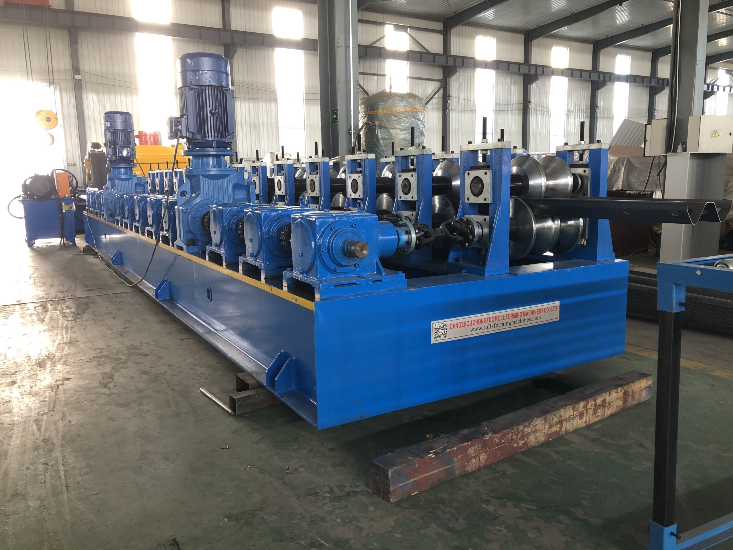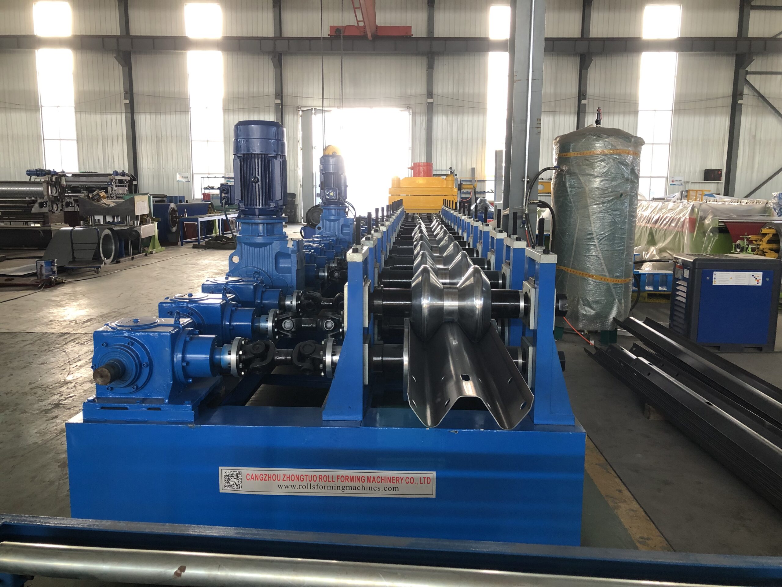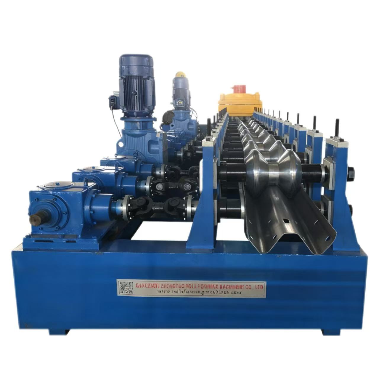 Guardrail safety barrierroll forming equipment(also known as highway guardrail) is a protective facility set up on both sides of the highway, in the central divider, and in dangerous sections. Its core function is to guide the trajectory of vehicles, buffer collision impact, prevent vehicles from rushing out of the road or entering the opposite lane, and enhance road recognition through eye-catching warning colors, fundamentally reducing traffic accident casualties and property losses. It is a core component of the highway traffic safety system.