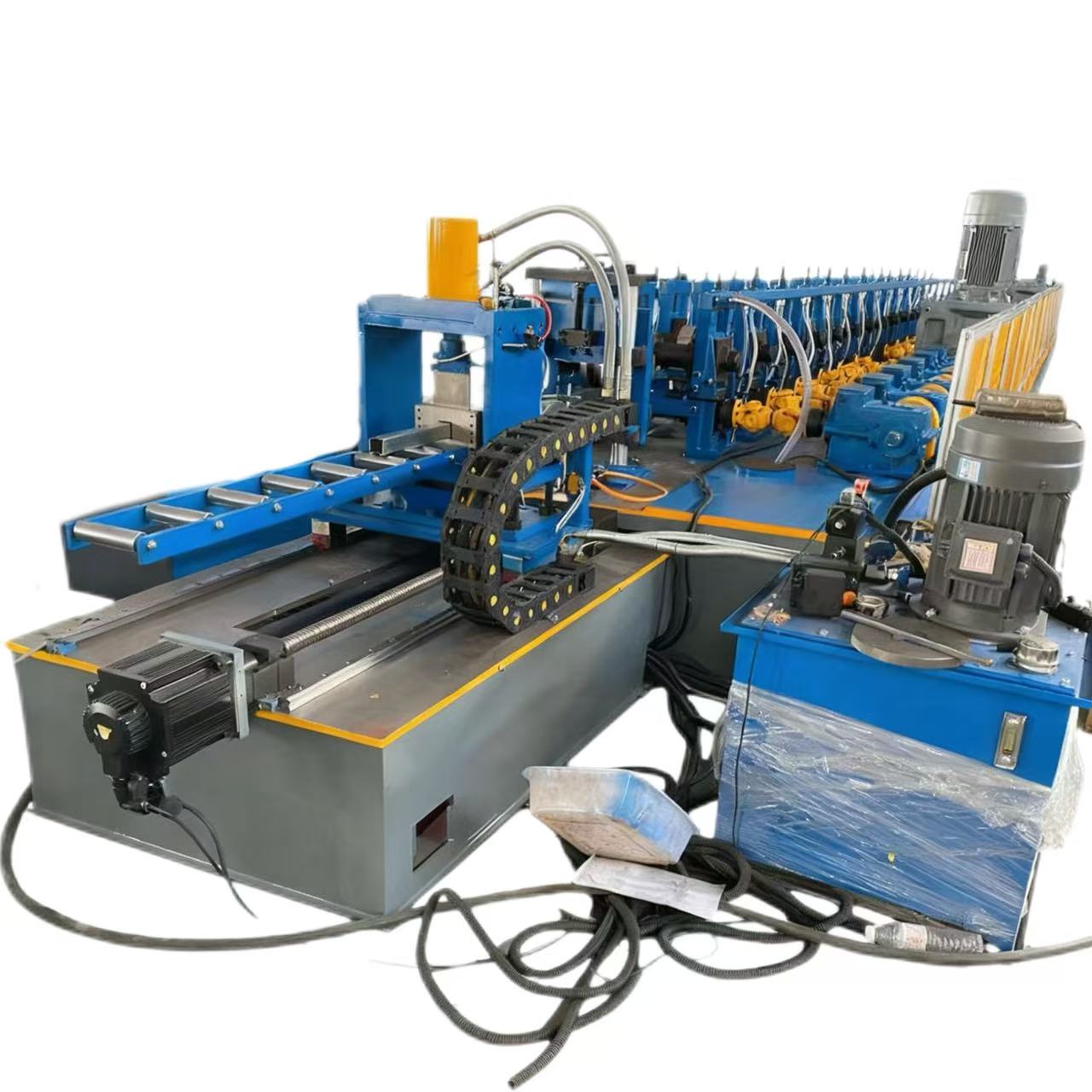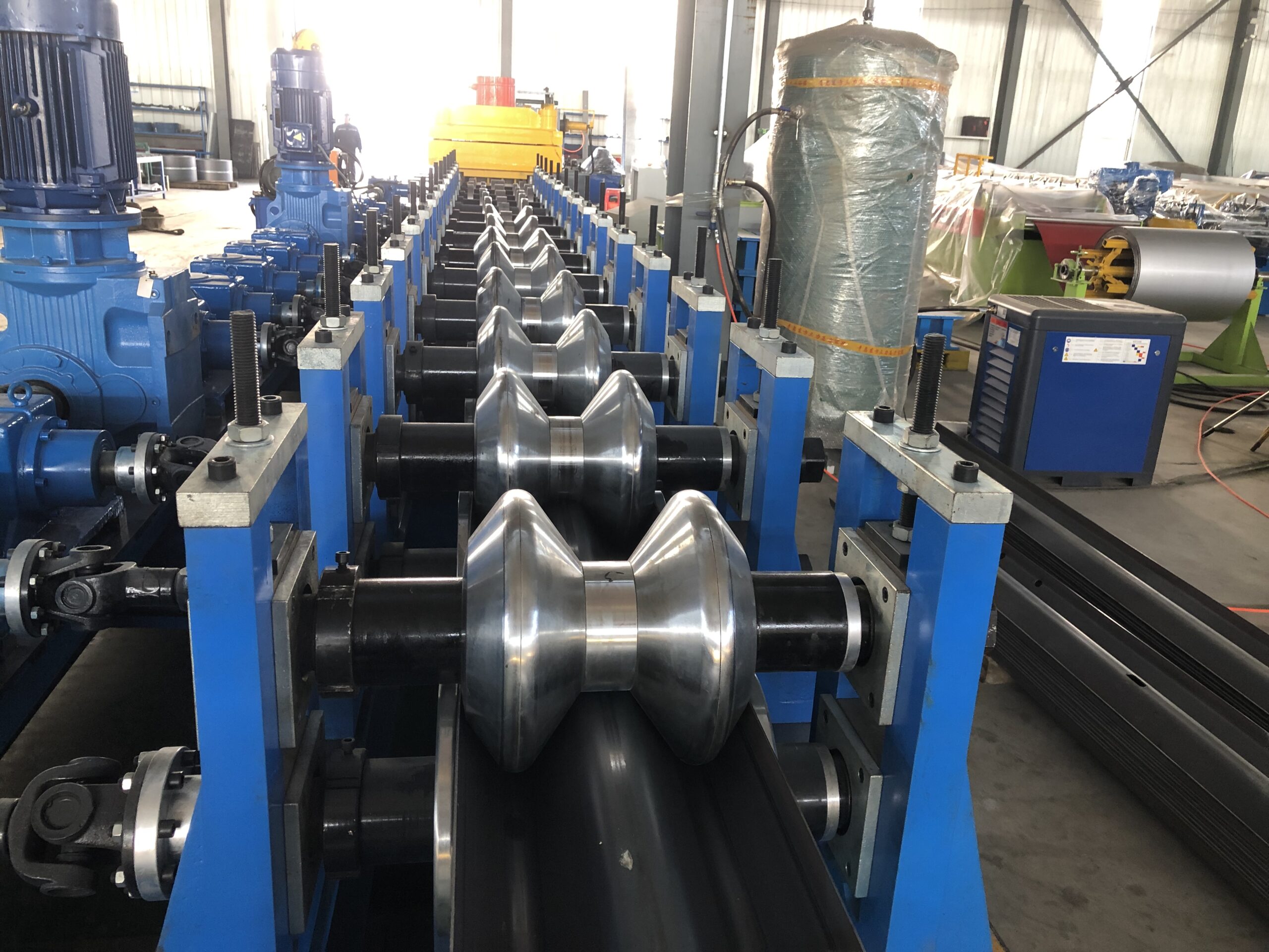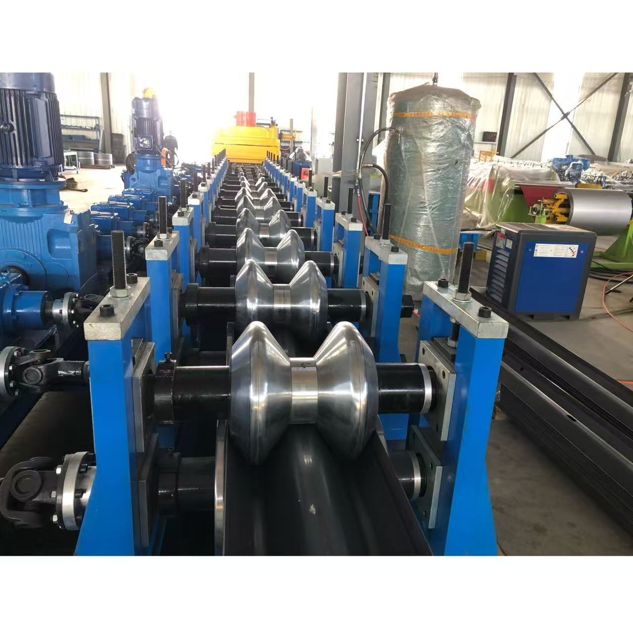 Guardrail safety barrierroll forming equipment(also known as highway guardrail) is a protective facility set up on both sides of the highway, in the central divider, and in dangerous sections. Its core function is to guide the trajectory of vehicles, buffer collision impact, prevent vehicles from rushing out of the road or entering the opposite lane, and enhance road recognition through eye-catching warning colors, fundamentally reducing traffic accident casualties and property losses. It is a core component of the highway traffic safety system.