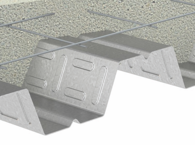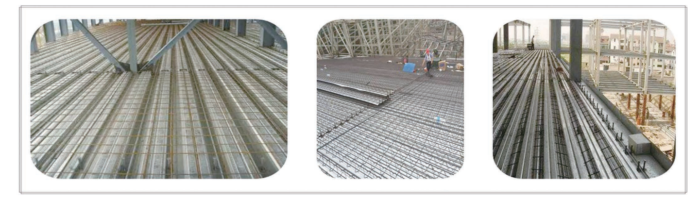 During the usage stage, the floor slab serves as the tensile steel reinforcement for the concrete floor slab, which increases the stiffness of the floor slab and saves the amount of steel and concrete used. The surface embossing of the profiled plate creates a bonding force between the floor slab and the concrete, forming a cohesive whole.