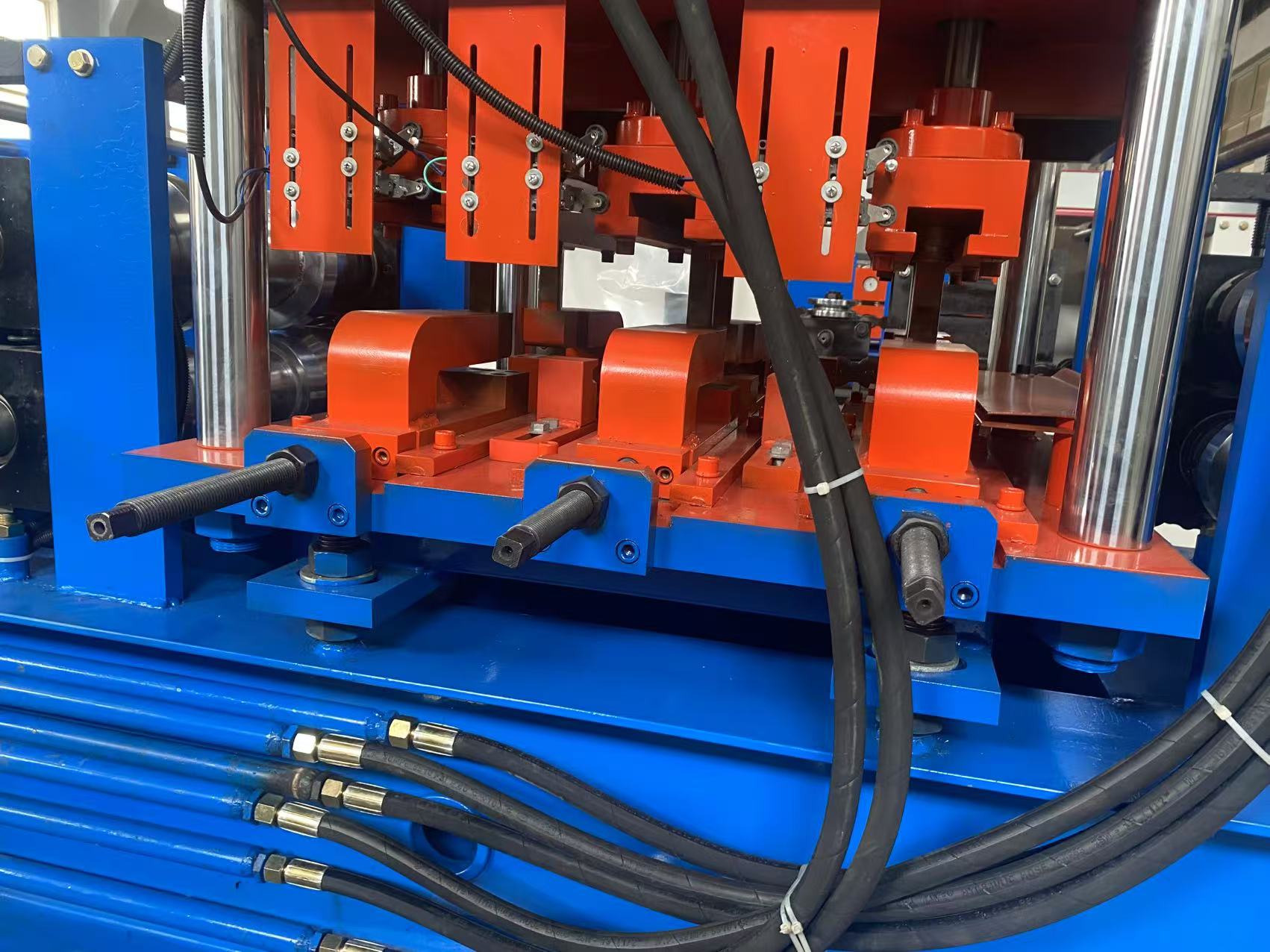 The equipment adopts multi pass rolling mill continuous rolling technology to ensure high accuracy and small deformation when the material is bent into a C-shaped section. The molding speed is usually 8-9 meters per minute, balancing efficiency and quality. The punching device accurately punches installation holes on the material, reducing subsequent processing steps. The hydraulic station and computer control system provide stable power and precise process control to ensure product consistency.